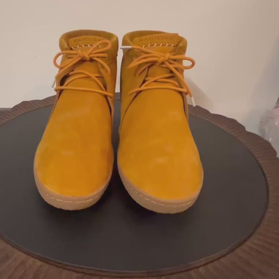 The Modern Chukka represents a thoughtful convergence of heritage craftsmanship and contemporary barefoot design. Anchored by a striking birch berry sole—an artistic collaboration with Metis creator Kaija Heitland—this ankle boot marries traditional moccasin construction with chukka proportions. Rendered in full-grain nubuck leather with a 5" shaft and front lacing, it delivers both structural integrity and the responsive ground feel essential to natural movement. The leather-lined interior and premium materials create a refined aesthetic suited to refined occasions and everyday wear alike. A 5-inch shaft. Lace-up closure. Crafted from full-grain nubuck leather uppers with leather linings and a rubber birch sole. Maintain with gentle spot cleaning using mild soap and a soft cloth.