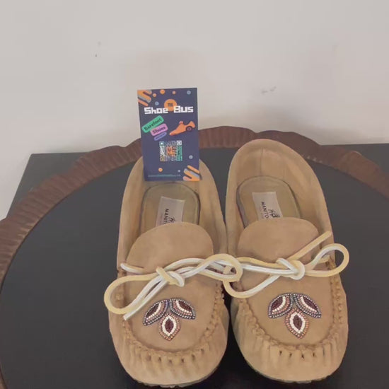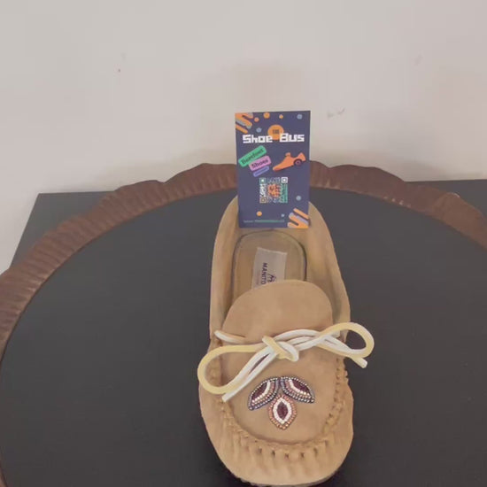 Elevate your summer style with the Kayak Moccasin, the perfect everyday shoe for any adventure. With its Turtle sole and traditional construction, this moccasin provides a strong foundation. Crafted from soft, breathable leather with stunning beadwork designed by Oji-Cree artist Meagan Anishinabie. The Kayak takes you from city streets to forest trails with ease!